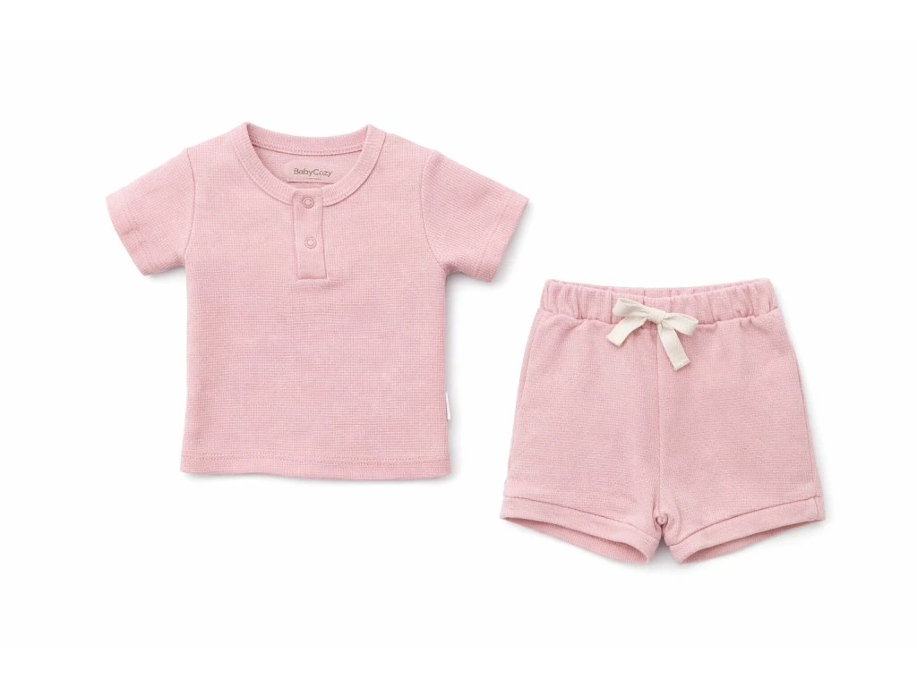 100% organická bavlna letný set, vafľový vzor, ružový