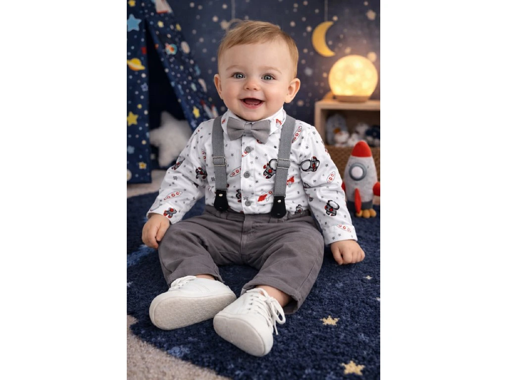 Elegantný set pre chlapčeka, vesmír, sivá/biela