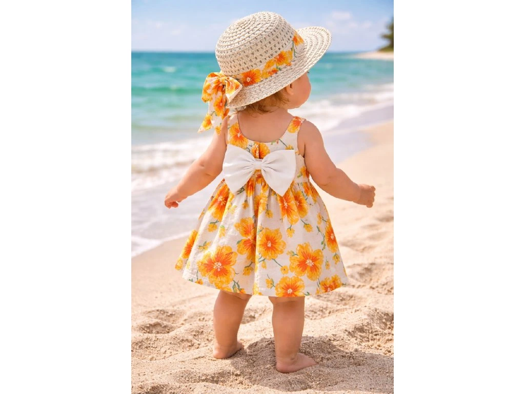 Letné šaty s klobúkom, oranžové