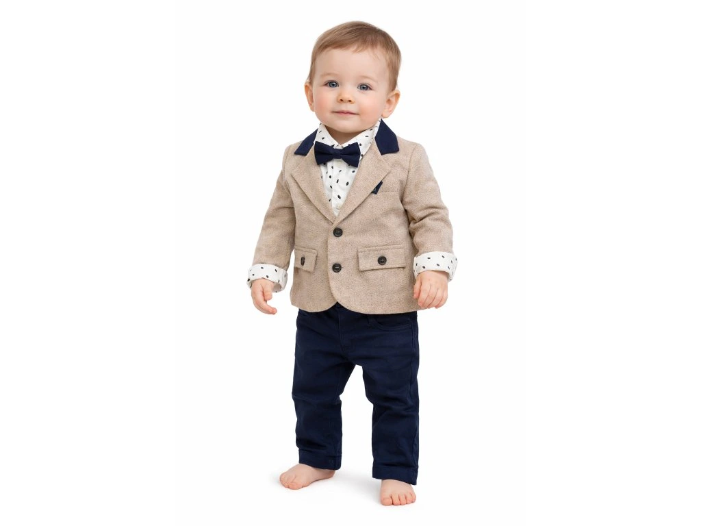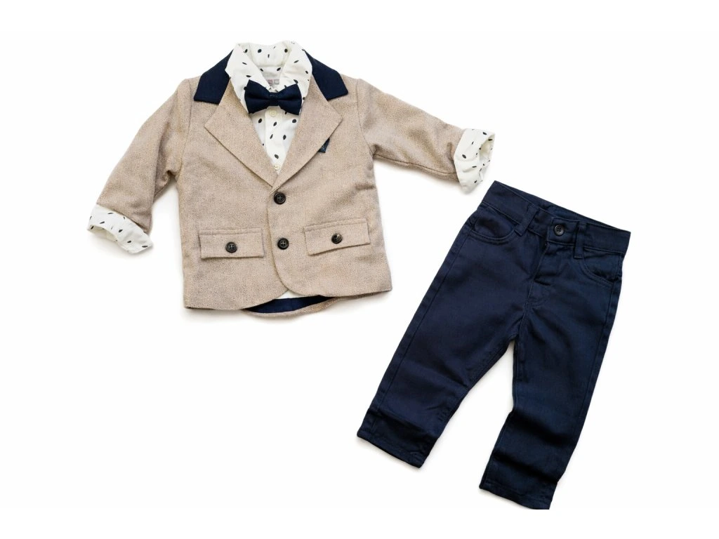 Oblek pre bábätko so sakom, béžová/modrá