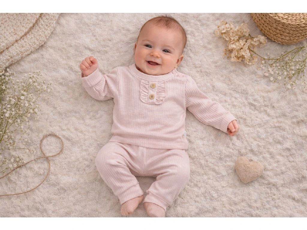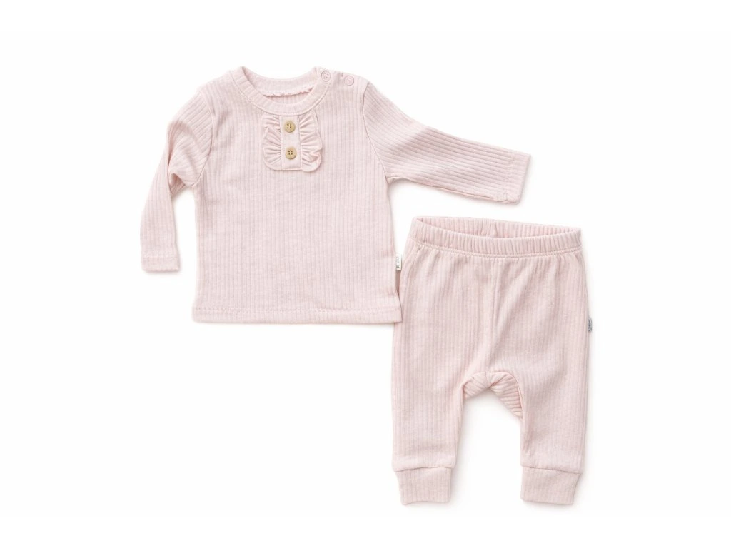 Vrúbkovaný 2- dielny set, volániky, ružová